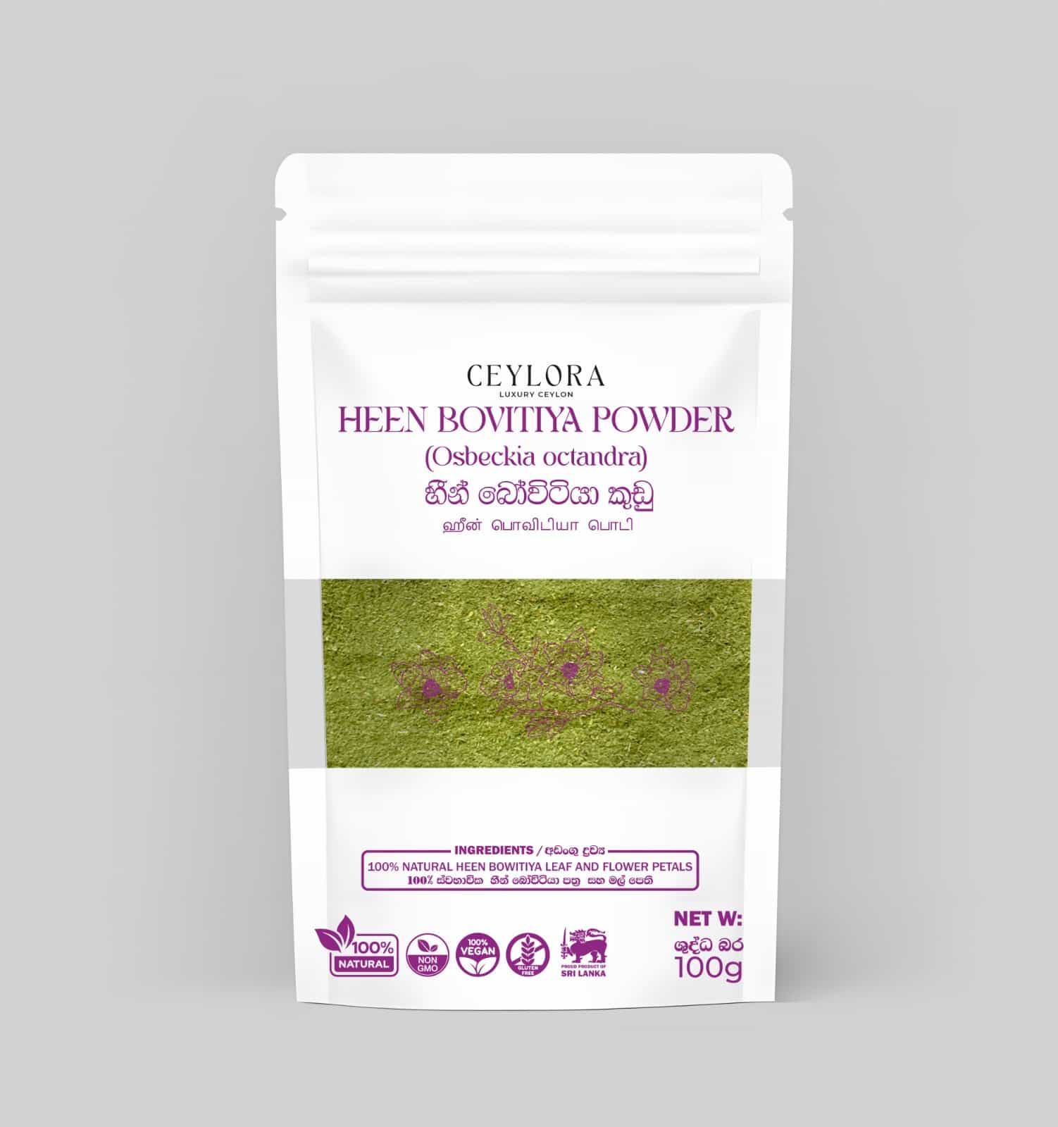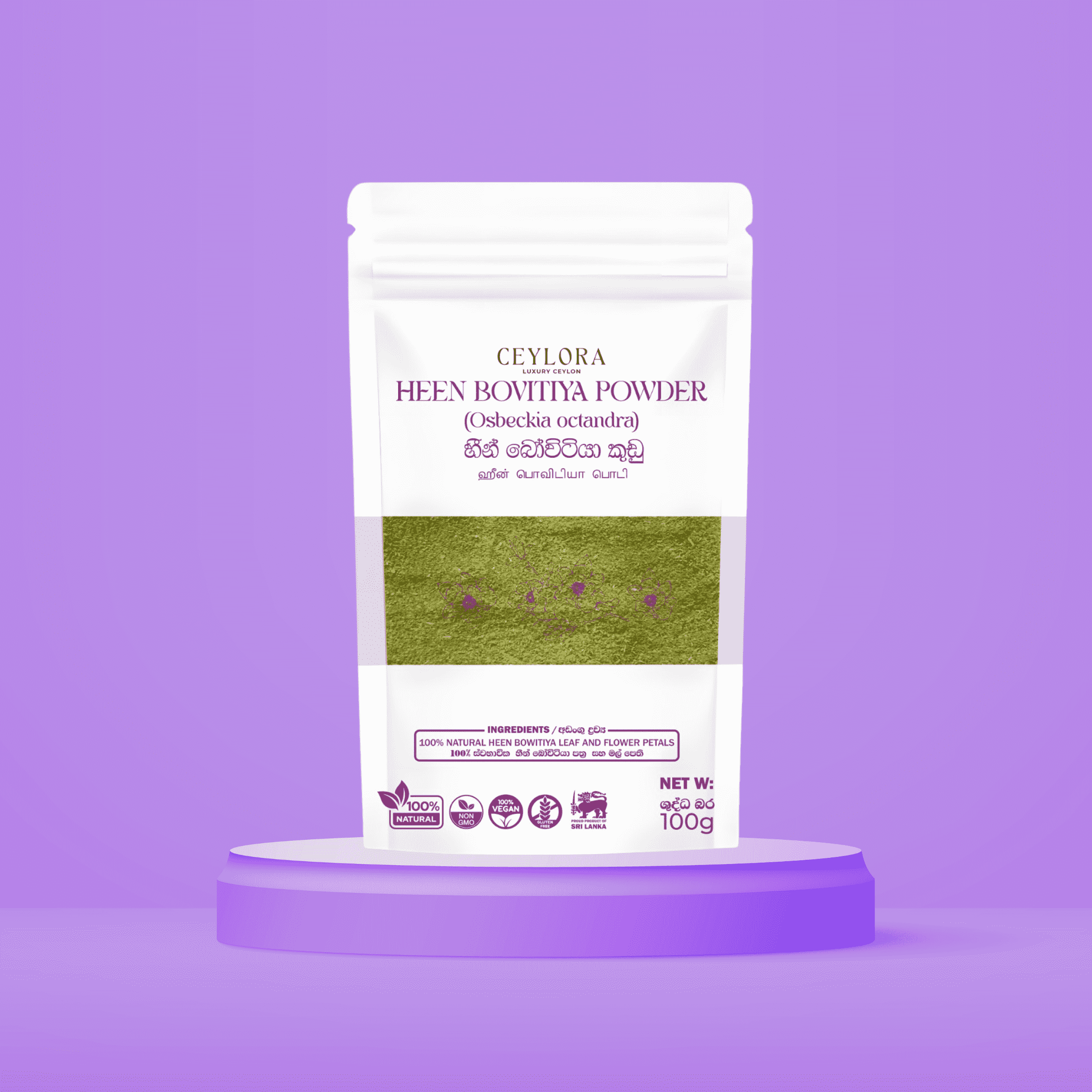Discover the ancient healing power of Heen Bovitiya from Ceylora, a treasured herb from Sri Lanka known as “The Liver Protector.” Our premium-grade, 100% natural Heen Bovitiya powder (Osbeckia octandra) contains only pure leaf and flower petals, carefully harvested and processed to preserve its potent medicinal properties.