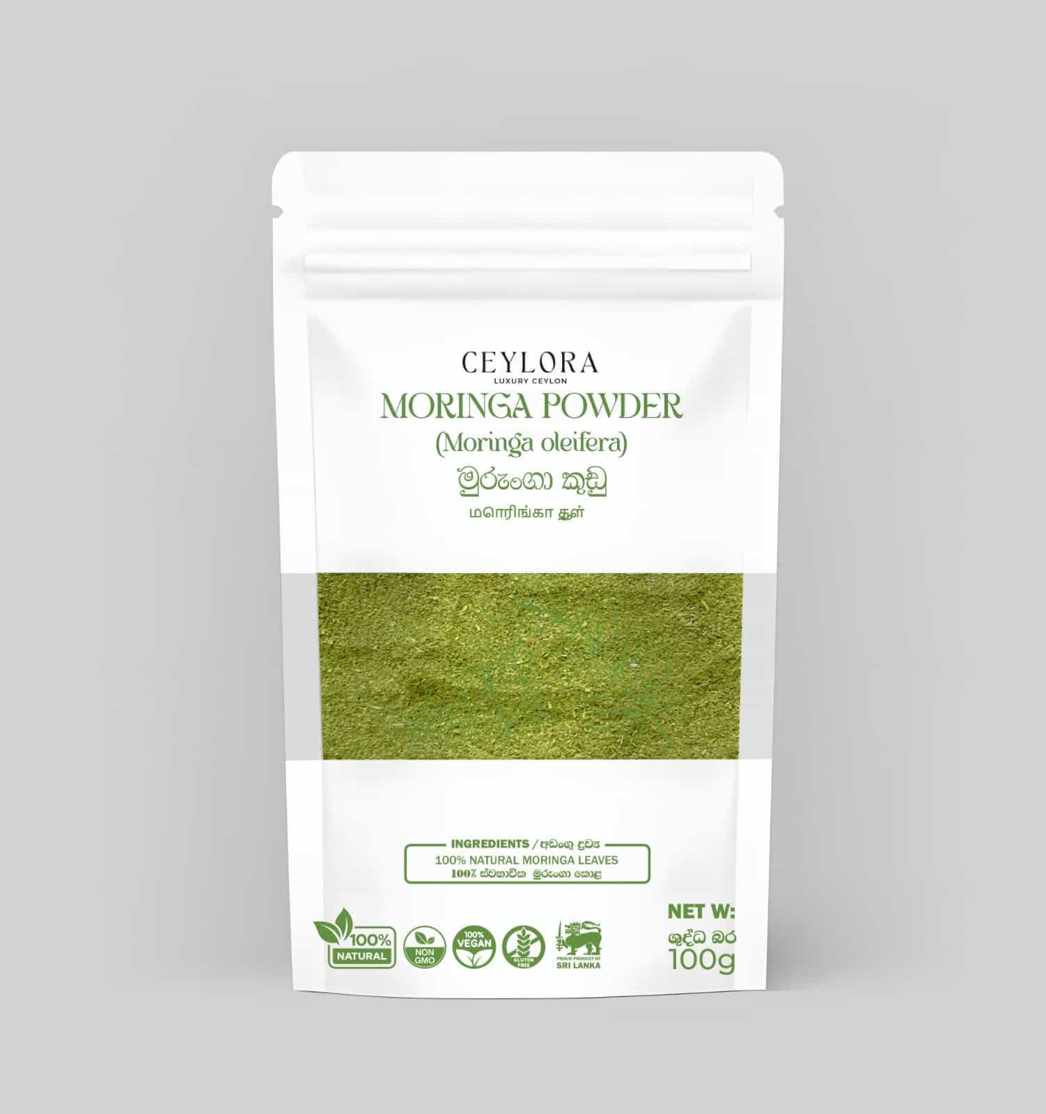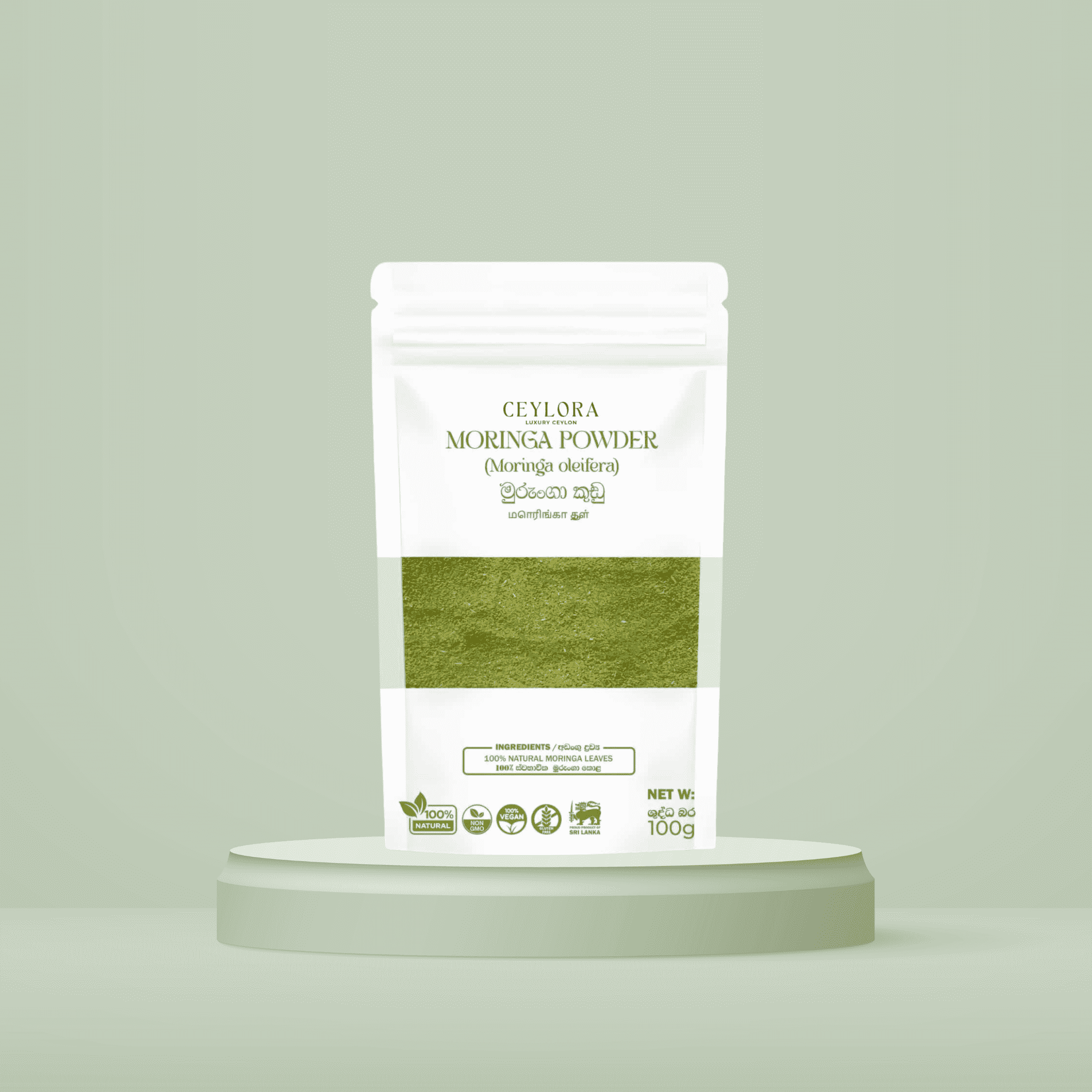 100g of premium Ceylora Moringa (Moringa oleifera) powder